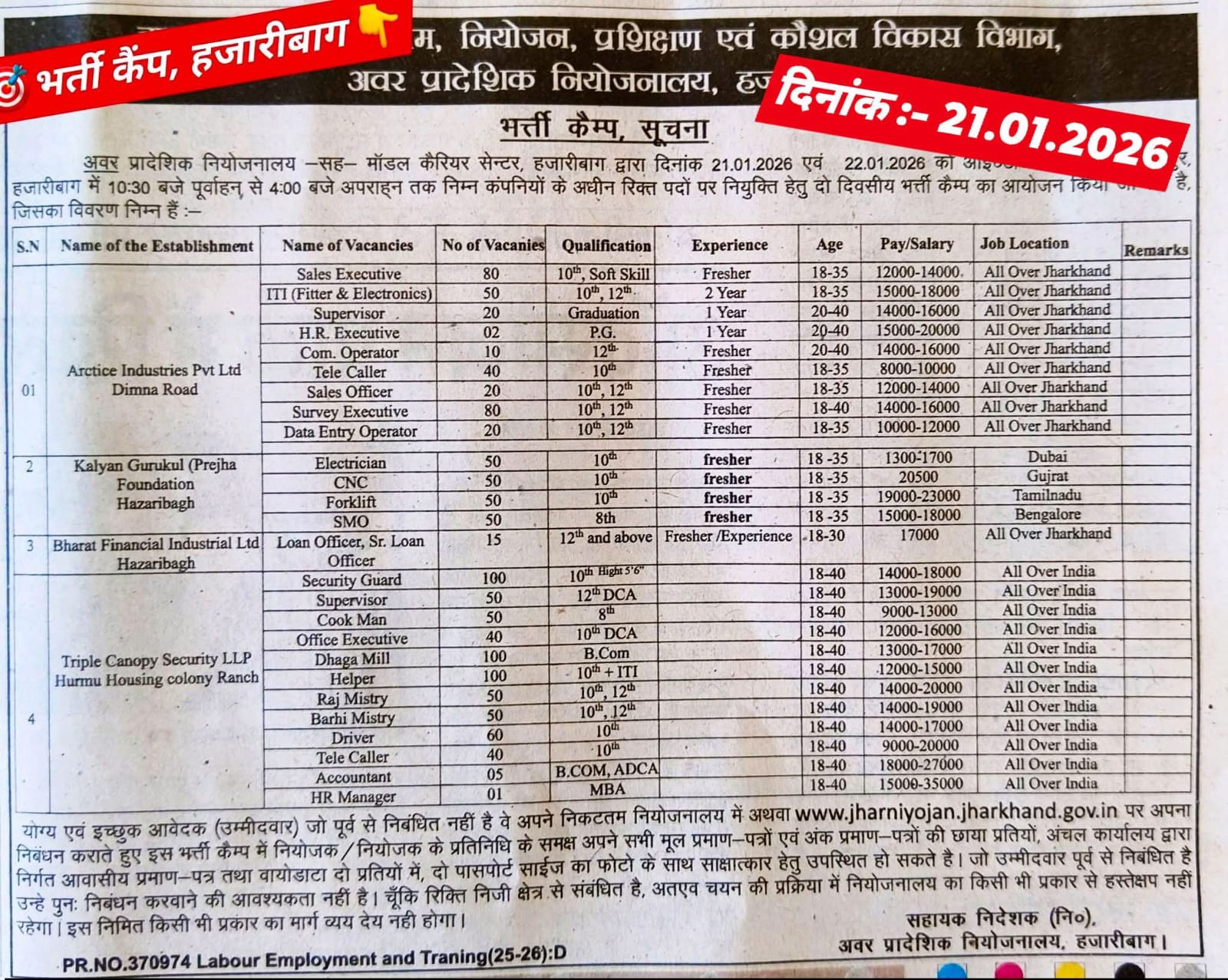 📌 Hazaribagh Niyojnalaya Bharti Camp 2026