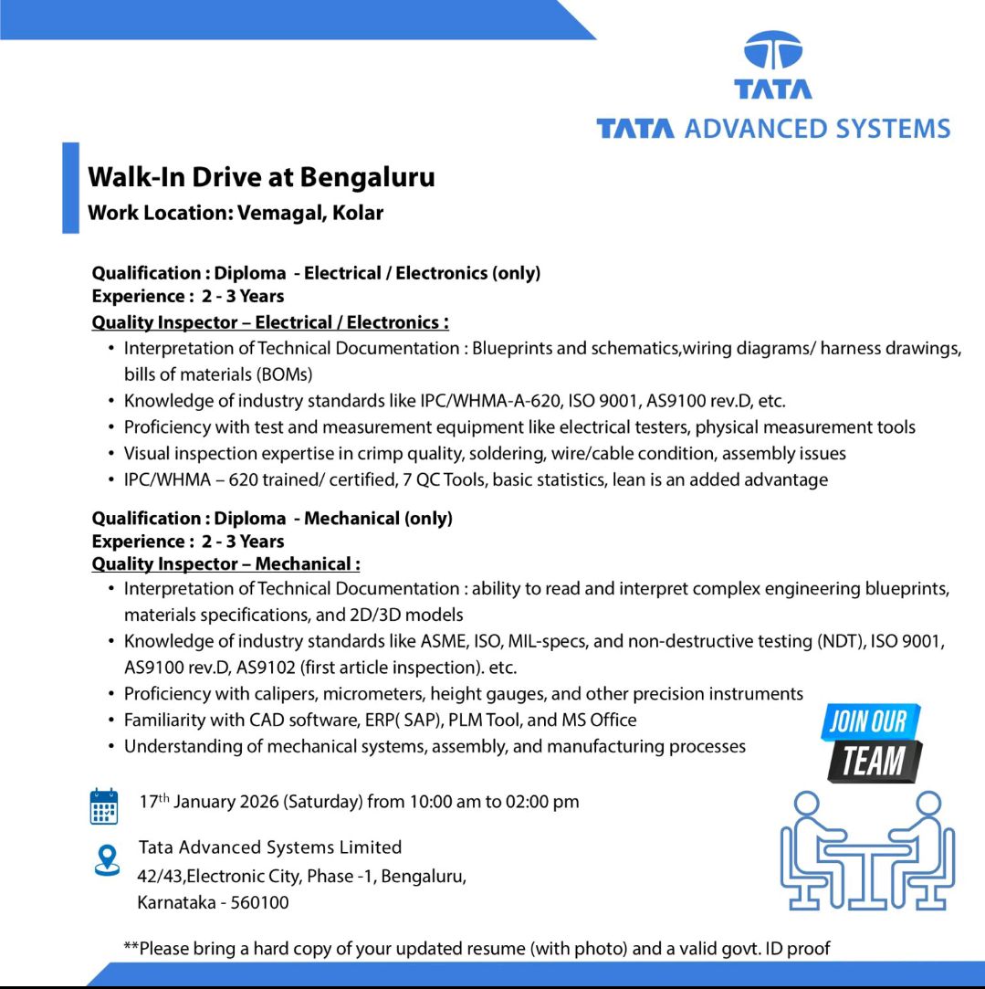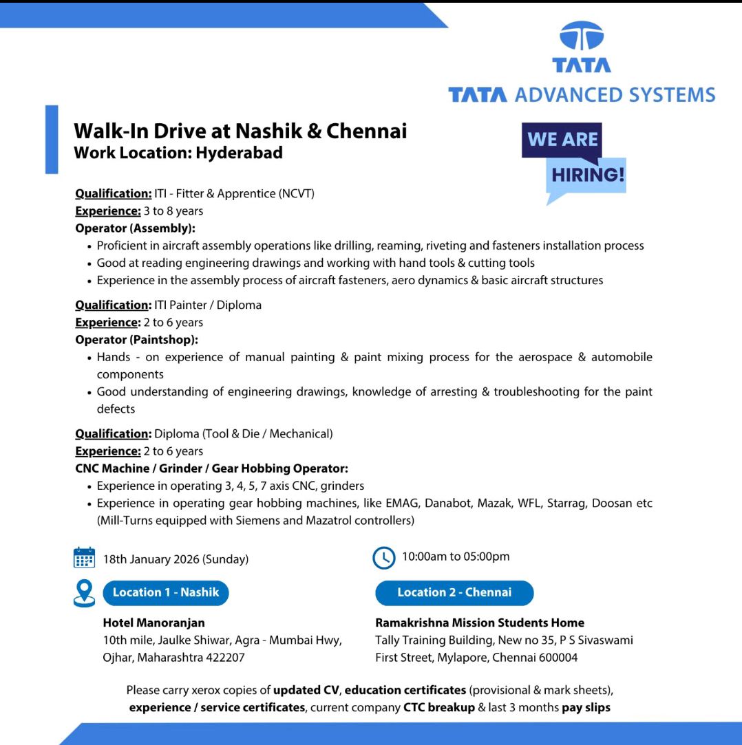 | Keywords | TASL Jobs, ITI Recruitment 2026, Tata Aerospace Jobs |